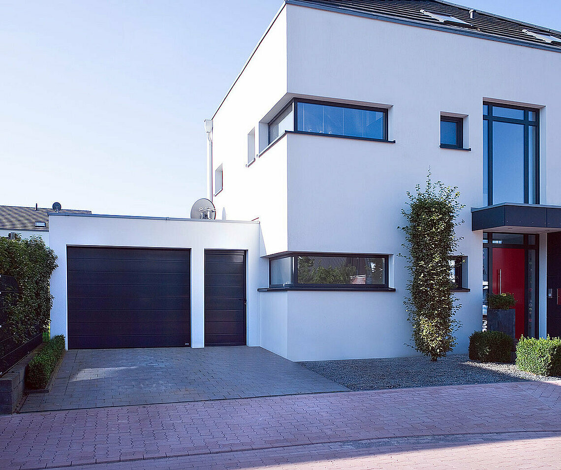 Bij een sectionaaldeur bevindt de garagedeur zich aan de rechter- of linkerkant van de garagepoort. Er bestaat echter ook de mogelijkheid om een sectionaaldeur met loopdeur of met 2-vleugelige zijdeur te plaatsen. Bij een kantelpoort is de zijdeur geïntegreerd in de kantelpoort of bevindt ze zich naast de kantelpoort. Bij een roldeur zorgt een bijpassende zijdeur voor een harmonieuze uitstraling. De deur is leverbaar met een naar binnen, buiten, rechts of links draaiend scharnier. De zijdeur past zich aan alle eisen aan en maakt een gemakkelijke toegang tot de garage mogelijk.
